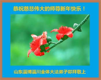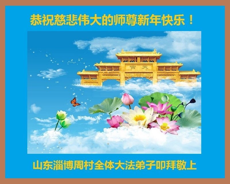恭祝慈悲伟大的师尊新年快乐! 山东省淄博周村全体大法弟子敬上 山东省淄博淄川全体大法弟子恭祝师尊新年好!