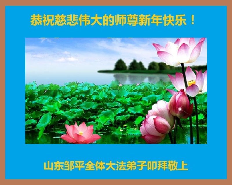 恭祝慈悲伟大的师尊新年愉快!师尊新年好! 山东省邹平全体大法弟子敬上 山东省聊城大法弟子恭祝师尊新年好!