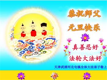 恭祝慈悲伟大的师尊元旦快乐! 天津市武清区河北屯镇全体大法弟子敬上 天津市武清区下伍旗镇全体大法弟子恭祝慈悲伟大的师尊元旦快乐!