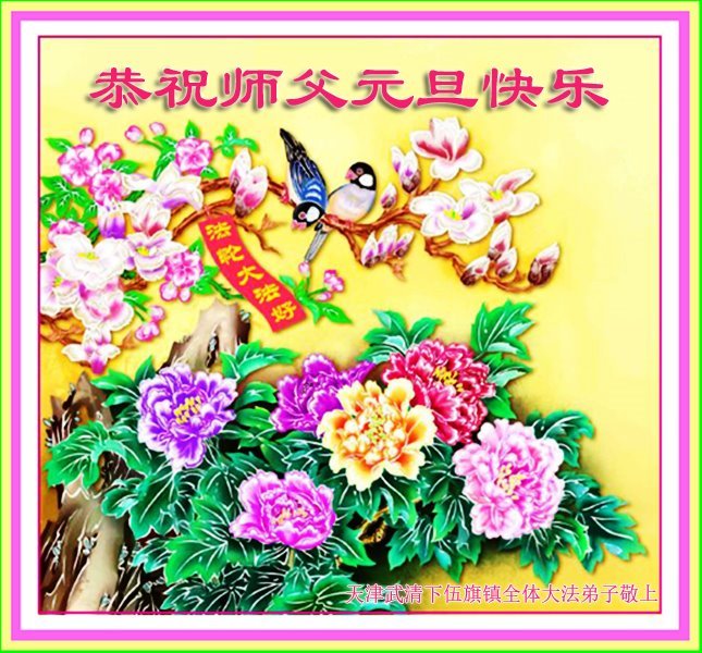 恭祝慈悲伟大的师尊元旦快乐! 天津市武清区下伍旗镇全体大法弟子敬上 天津市东丽区一老年大法弟子恭祝慈悲伟大的师父新年快乐!