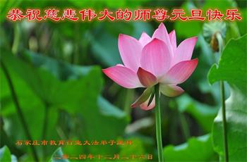 恭祝师尊新年好! 广州市教师大法弟子敬上 二零二四年十二月二十六日 河北省石家庄藁城区教育行业大法弟子恭祝师尊元旦快乐!