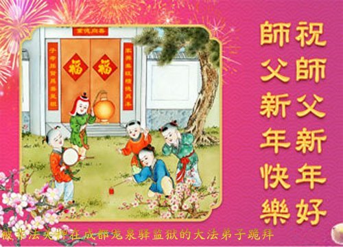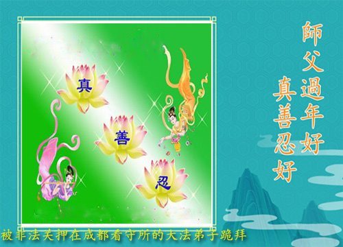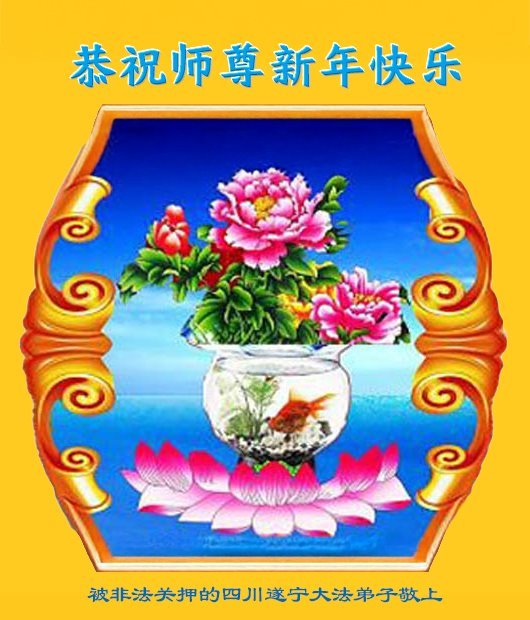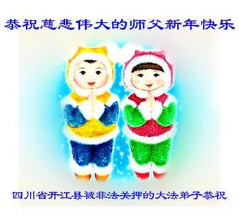 恭祝慈悲伟大的师尊新年快乐! 恭祝师父新年好! 四川省成都市龙泉驿区被非法关押的大法弟子敬上 四川省成都市被非法关押的大法弟子恭祝师尊新年快乐!