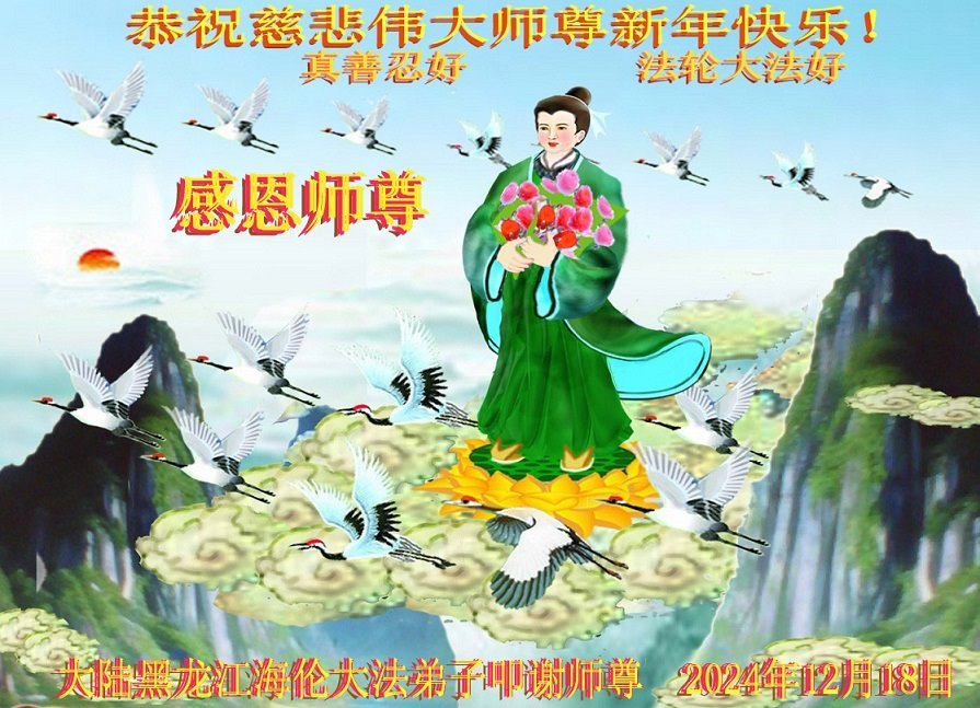 恭祝慈悲伟大的师父新年快乐! 四川省开江县被非法关押的大法弟子敬上 二零二四年十二月十九日 黑龙江省绥化市海伦市被非法判刑的一女大法弟子恭祝师尊新年快乐!