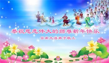 感谢师父将法轮大法洪传于世,让弟子们身心受益,在浊世中超凡脱俗,返本归真。弟子们唯有多学法,修好自己 ,救度更多的众生,来回报师父的慈悲救度之恩。 云南大法弟子恭祝慈悲伟大的师尊新年快乐!