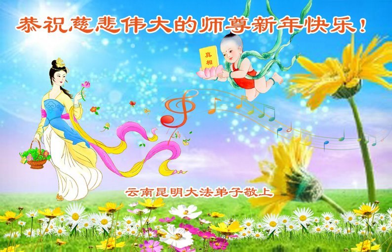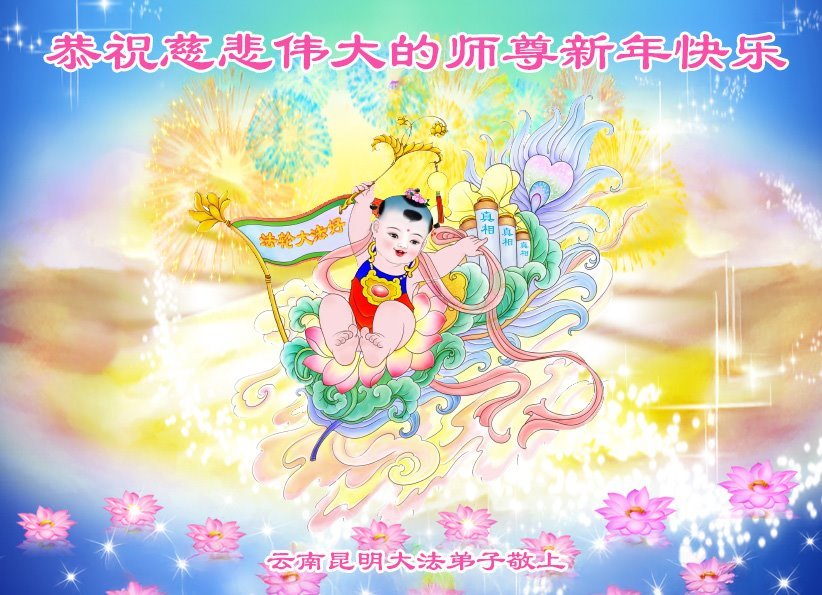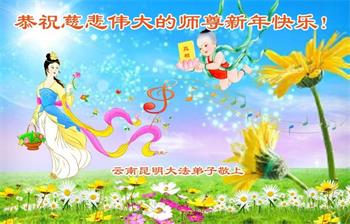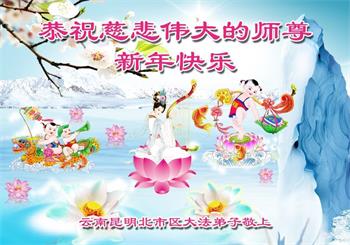 恭祝慈悲伟大的师尊新年快乐! 云南昆明大法弟子敬上 云南昆明北市区大法弟子恭祝慈悲伟大的师尊新年快乐!