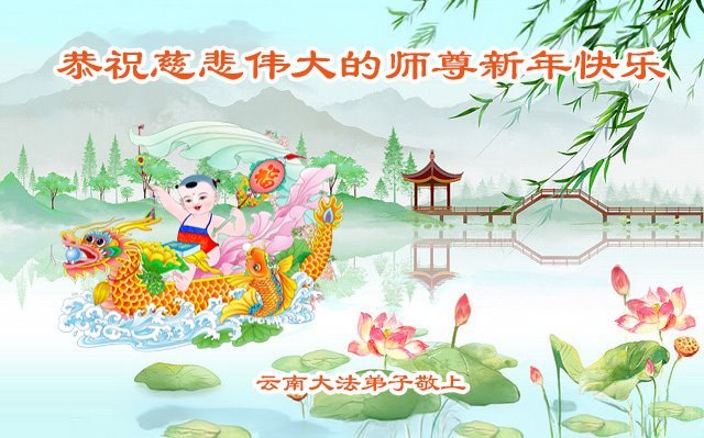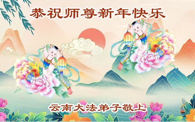 恭祝慈悲伟大的师尊新年快乐! 云南昆明大法弟子敬上 云南大法弟子恭祝慈悲伟大的师尊新年快乐!
