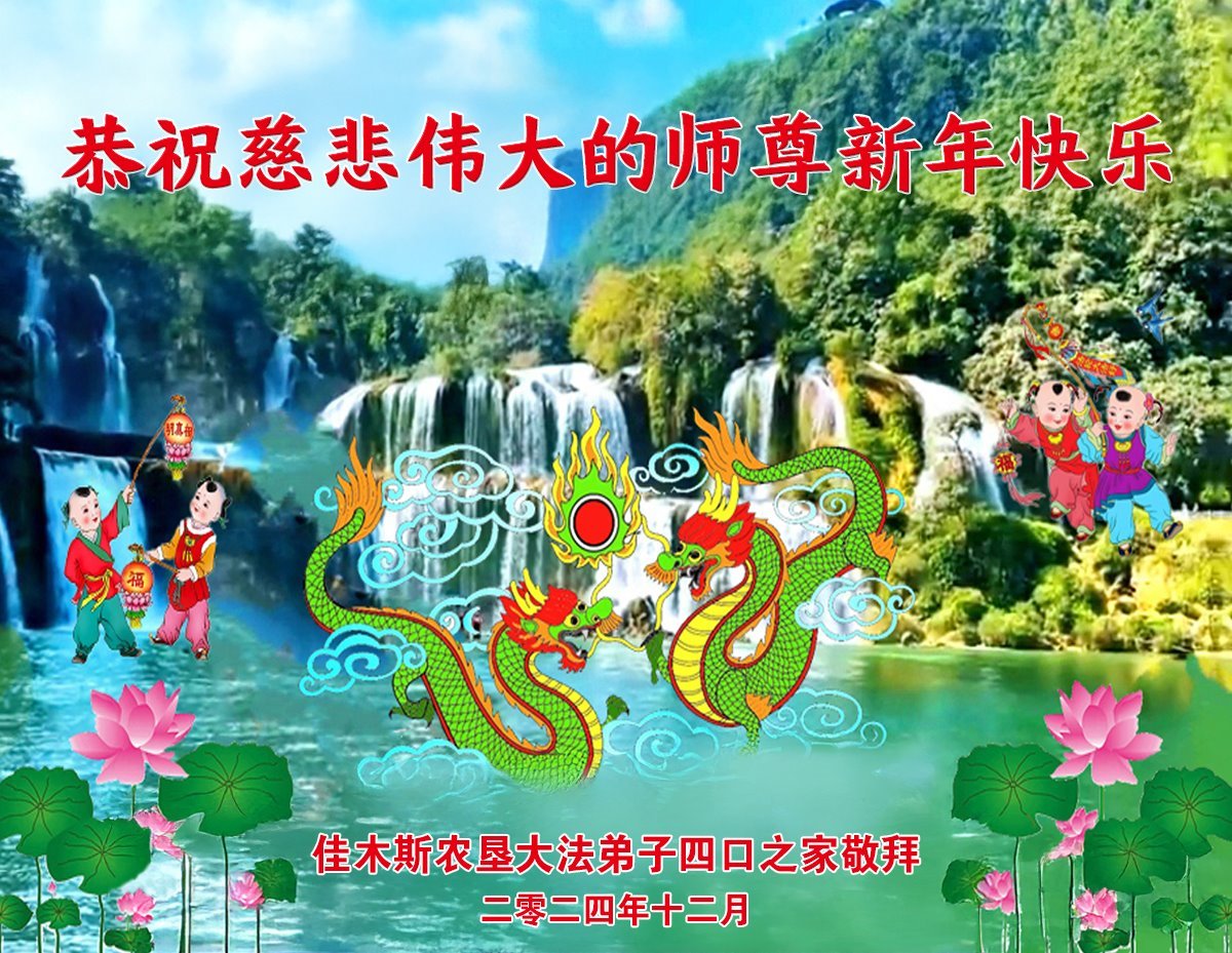 恭祝师尊新年好! 感恩师尊对弟子的不离不弃,希望在新的一年里,弟子继续勇猛精進,不懈怠,做好三件事,圆满随师还。 中国兖矿集团大法弟子敬上 二零二四年十二月十九日 中国兖矿集团一大法弟子携全家恭祝师尊新年好!