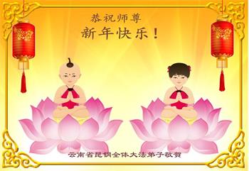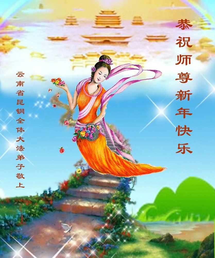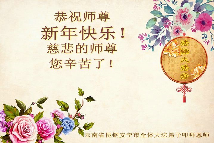 恭祝师尊新年快乐!感恩师尊的一路保护,我们才能走到今天!慈悲的师尊您辛苦了! 云南省昆钢全体大法弟子敬上 云南临沧大法弟子恭祝慈悲伟大的师父新年快乐!