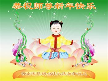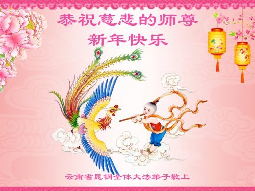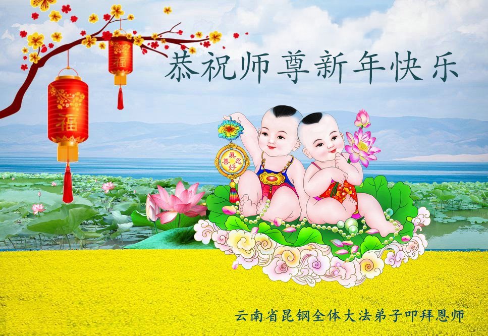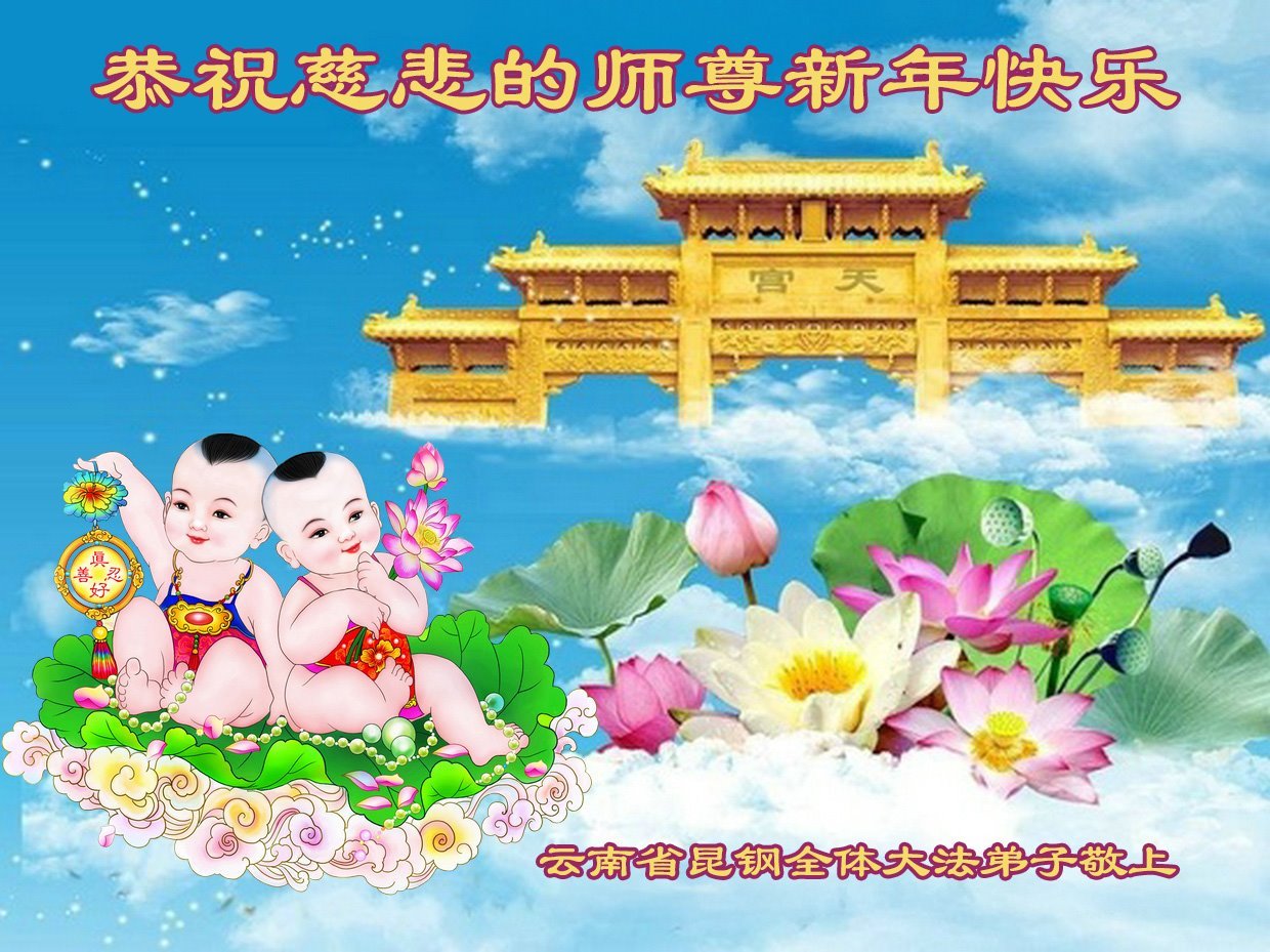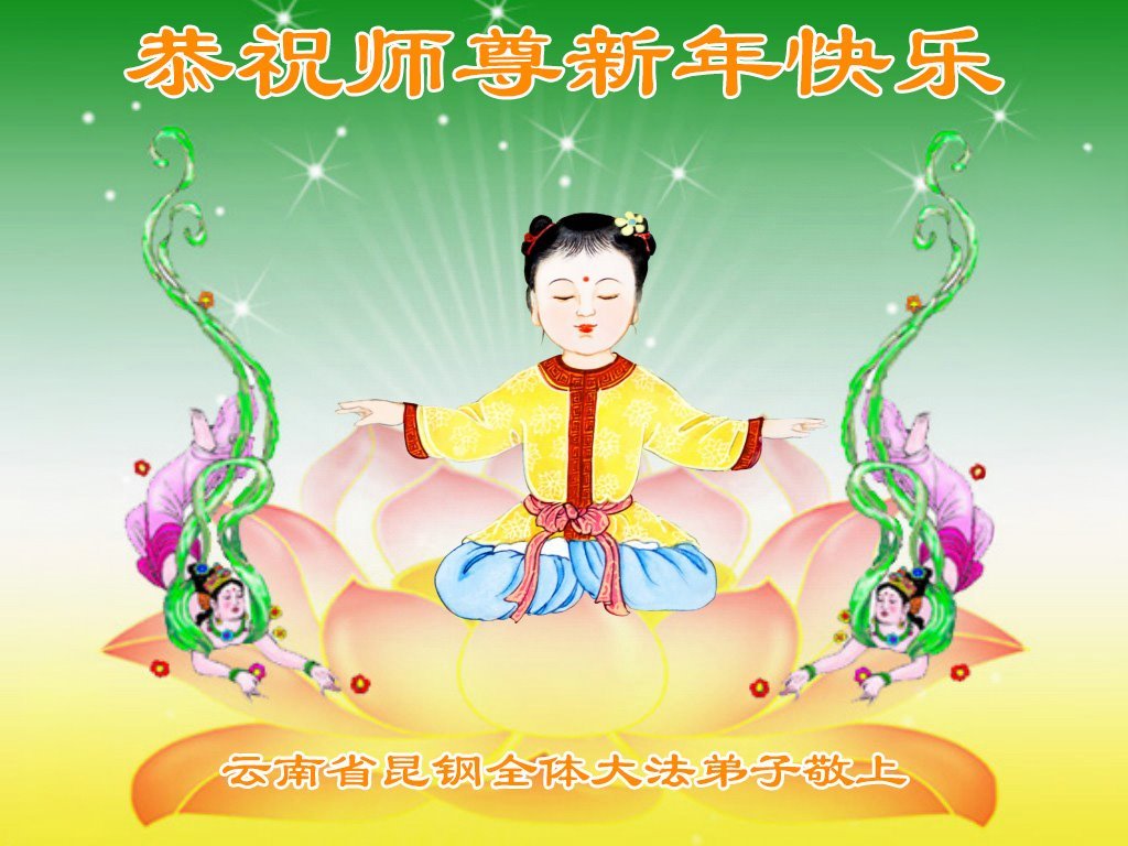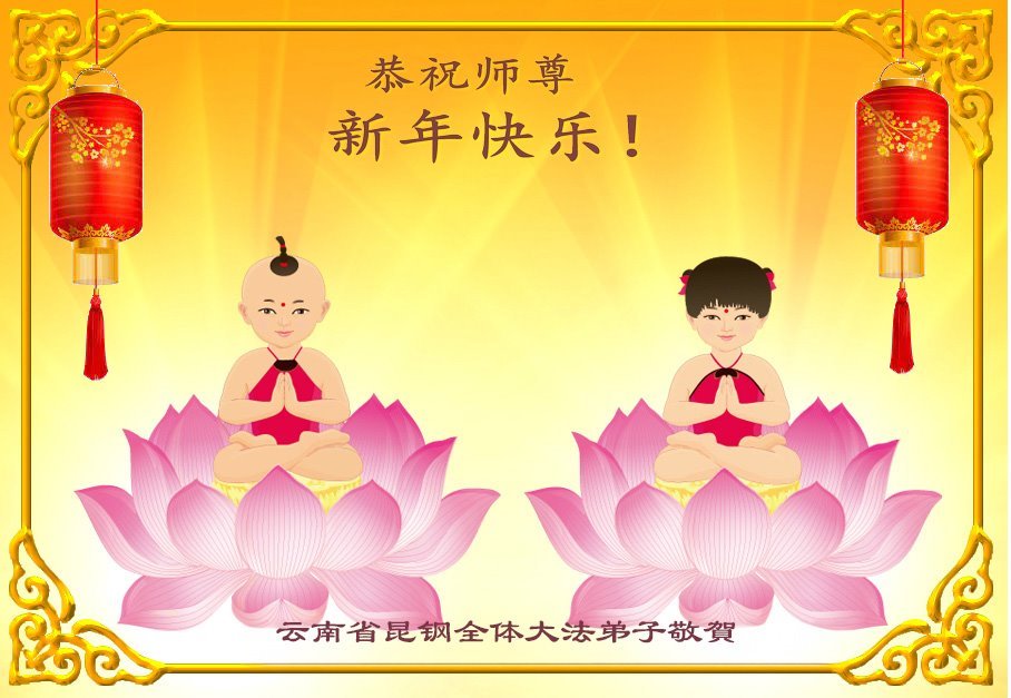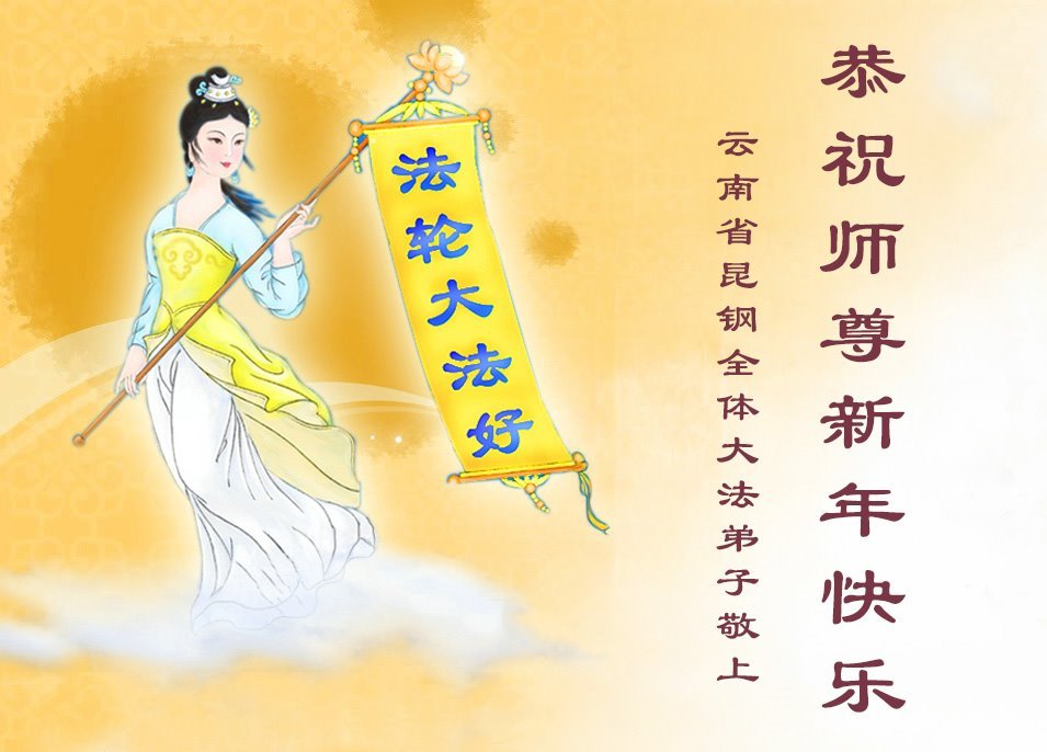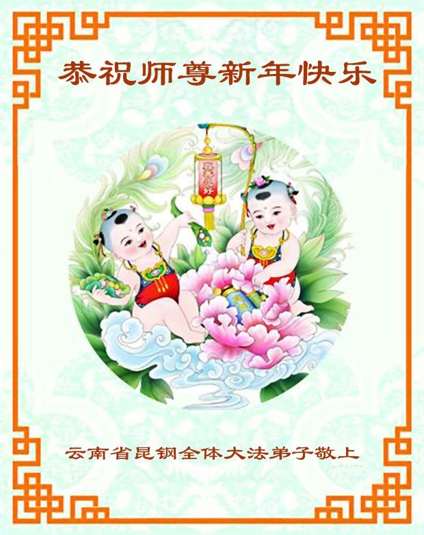 恭祝师尊新年快乐!感恩慈悲的师尊苦度! 法轮大法好,真善忍好! 云南省昆钢全体大法弟子敬上 云南省昆钢全体大法弟子恭祝师尊新年快乐!