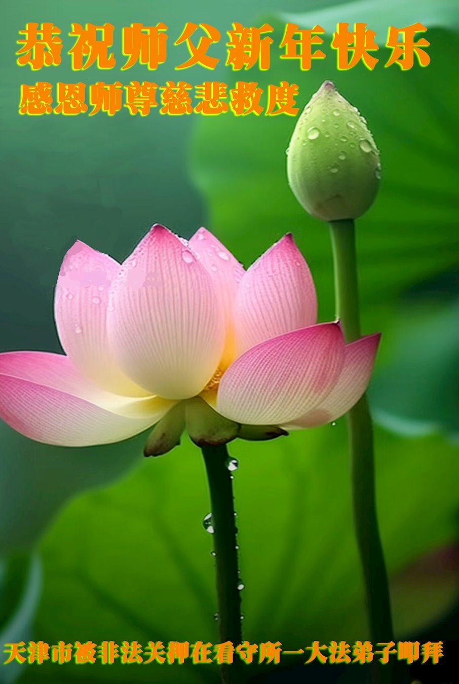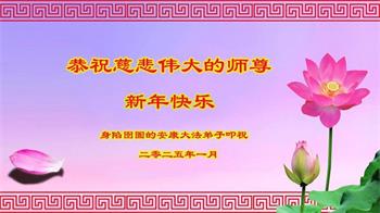 恭祝慈悲伟大的师尊新年好! 江苏省苏州市被非法关押的大法弟子敬上 天津市被非法关押在看守所一大法弟子拜贺慈悲伟大的师父新年快乐!
