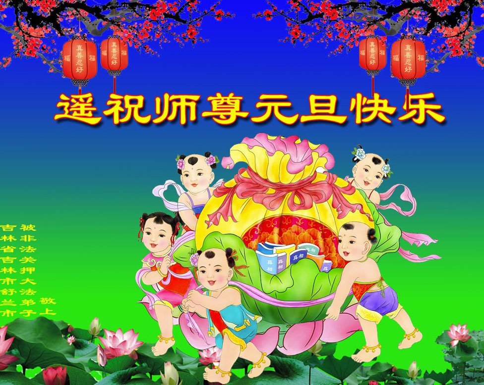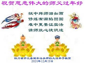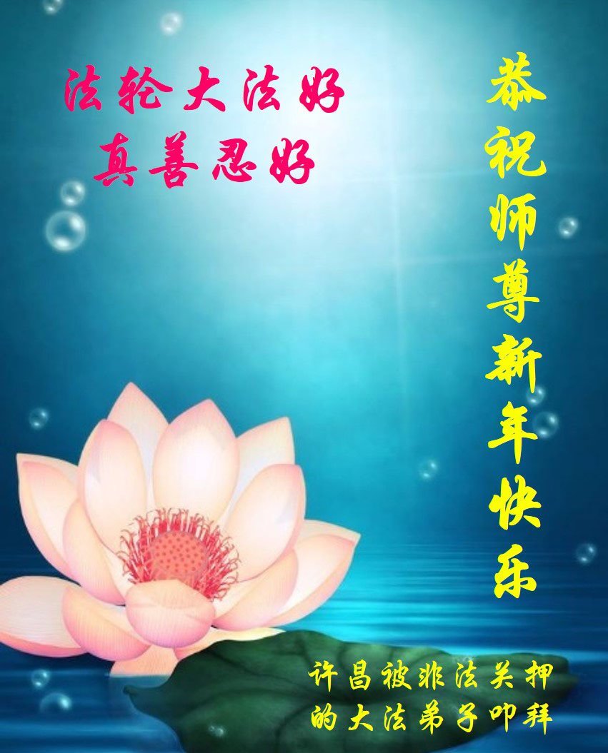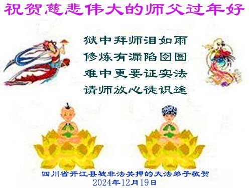 慈悲伟大的师尊您好!您辛苦了!恭祝师尊新年快乐!新年好!无论在什么环境我们都会把法轮大法的美好和师尊的慈悲救度带给周围的人。 四川省开江县被非法关押的大法弟子祝贺慈悲伟大的师父新年好!