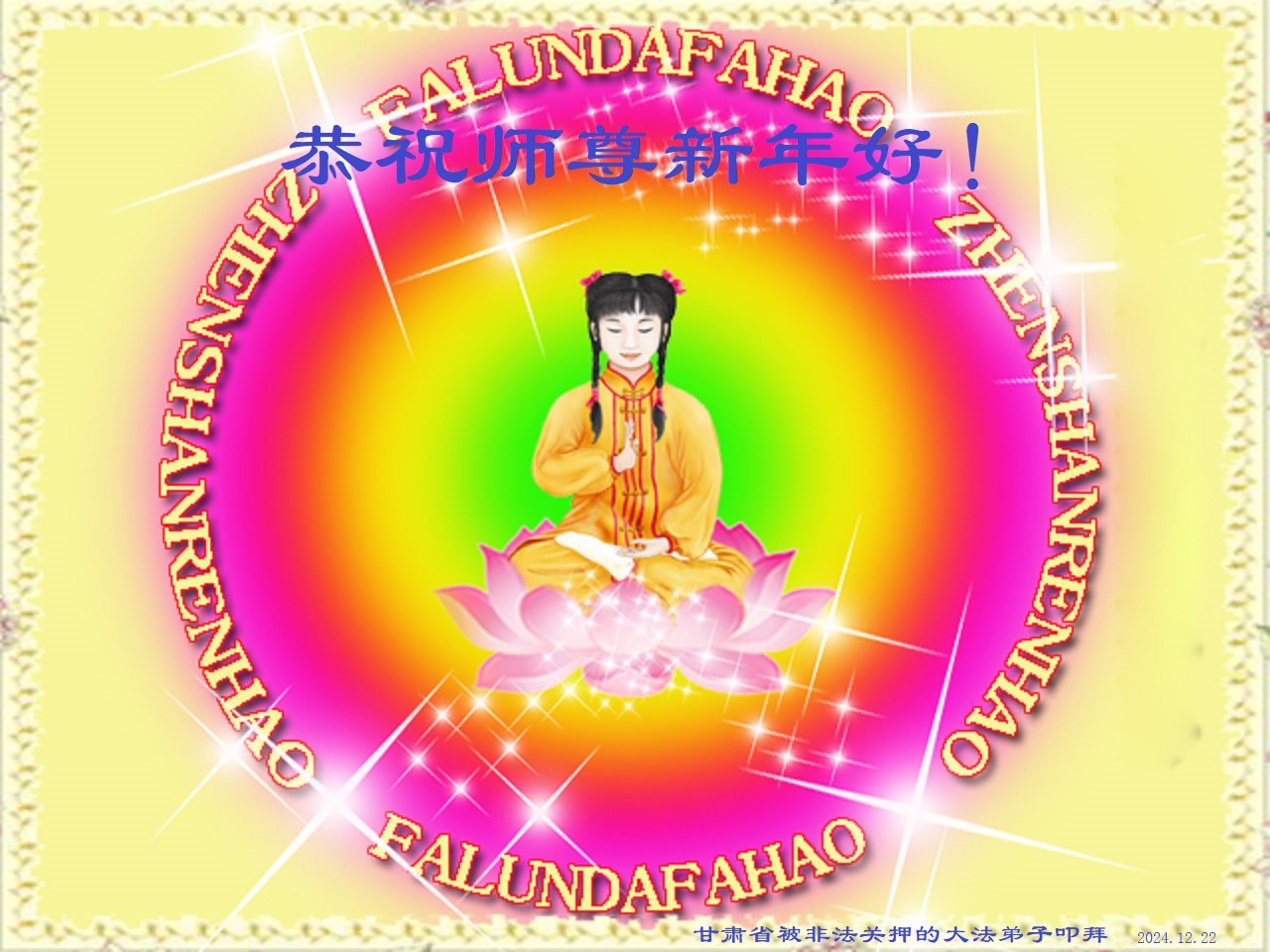 陕西省被非法关押迫害的大法弟子敬上 二零二四年十二月二十日 甘肃省被非法关押的大法弟子恭祝慈悲伟大的师尊新年好!