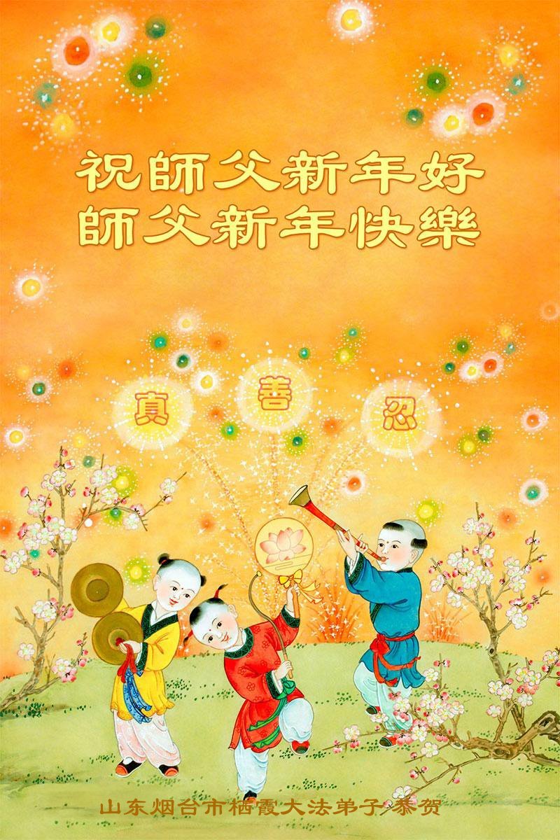 恭祝慈悲伟大的师尊新年好! 山东省潍坊市寿光市一个农村学法小组大法弟子敬上 山东省烟台市栖霞市一乡镇学法小组大法弟子恭祝师父新年好!