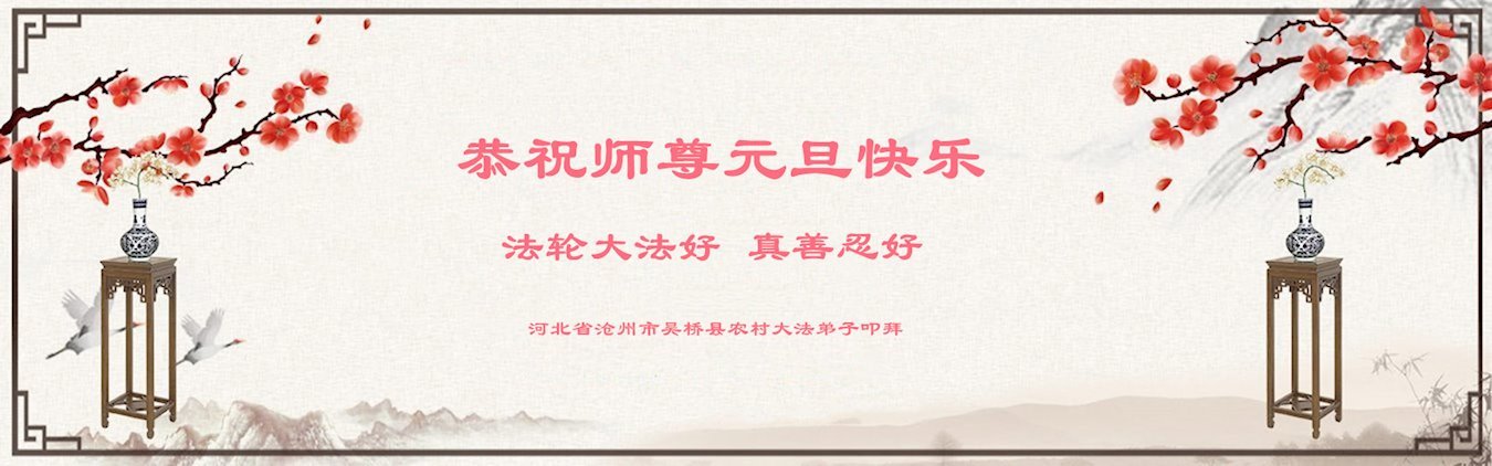 恭祝慈悲伟大的师父新年快乐! 河北省沧州市泊头市郊区农村一学法小组大法弟子敬上 河北省保定市一农村学法小组全体大法弟子恭祝师尊新年快乐!
