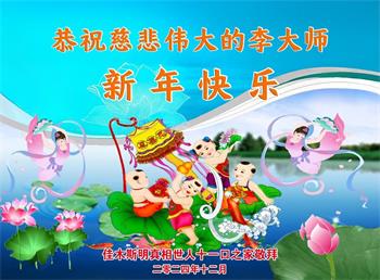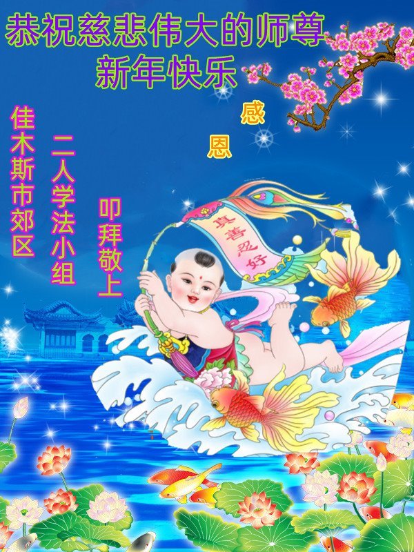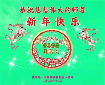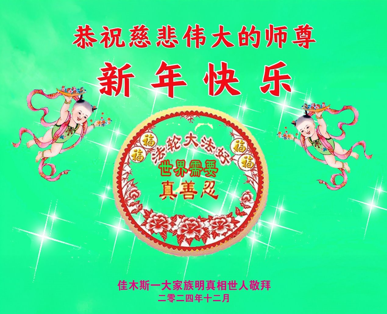 恭祝慈悲伟大的师尊新年快乐! 黑龙江省佳木斯市明真相世人11口之家敬上 黑龙江省佳木斯市明真相世人一大家族恭祝慈悲伟大的师尊新年快乐!
