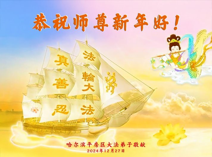 【明慧网二零二四年十二月三十一日】 黑龙江哈尔滨市通河县一大法弟子恭祝慈悲伟大的师尊新年快乐!