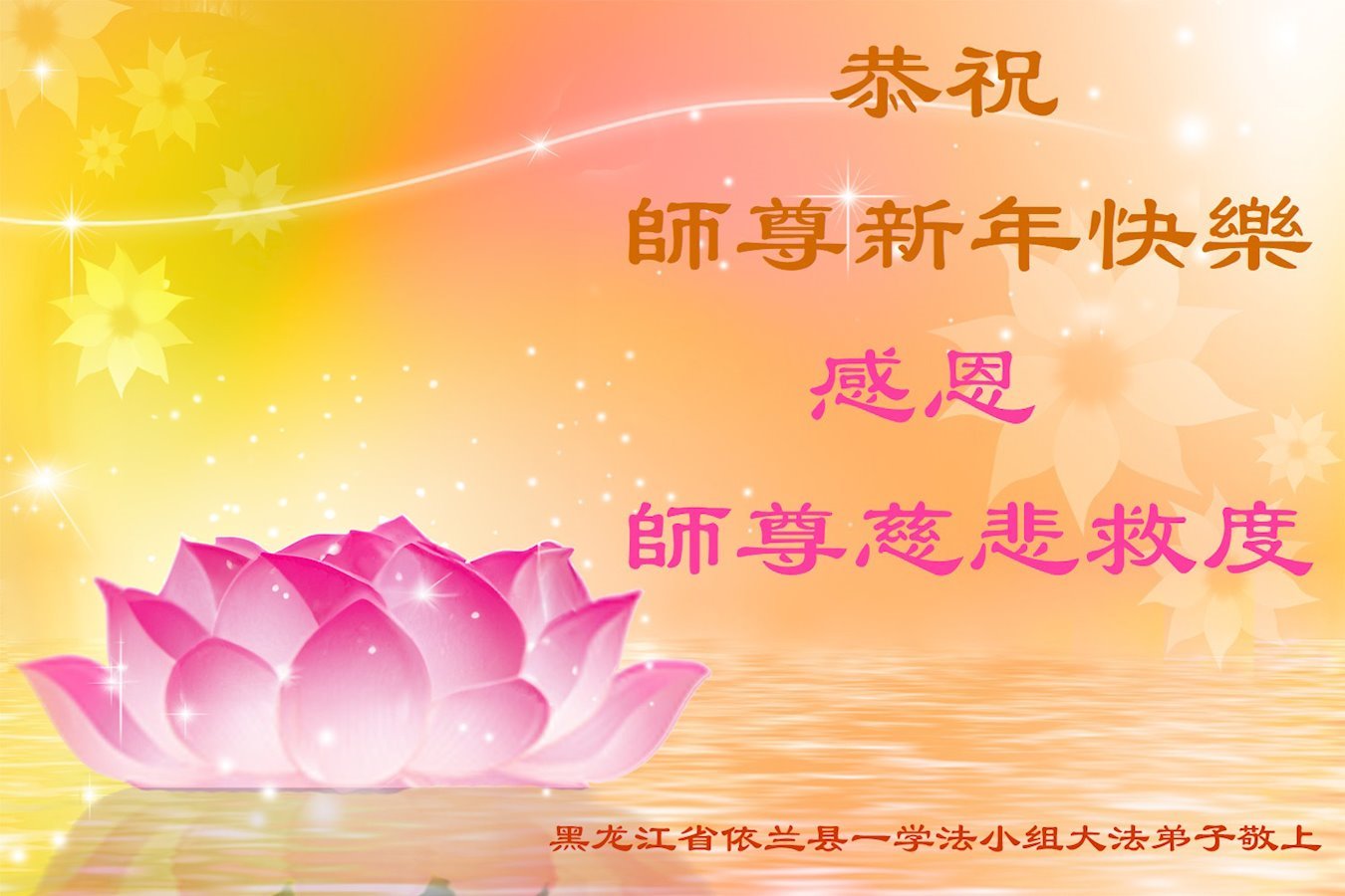 恭祝慈悲伟大的师尊新年快乐!师尊您辛苦了! 您为度我们,为救苍宇众生付出了您的一切,弟子欠师尊的太多太多。我们唯有学好法,抓紧修炼,跟上师尊正法進程,做好救人的事,才能不负师恩,不枉对我们翘首企盼的众生。 黑龙江省依兰县一学法小组大法弟子敬上 黑龙江省哈尔滨市依兰县大法弟子恭祝师父新年好!