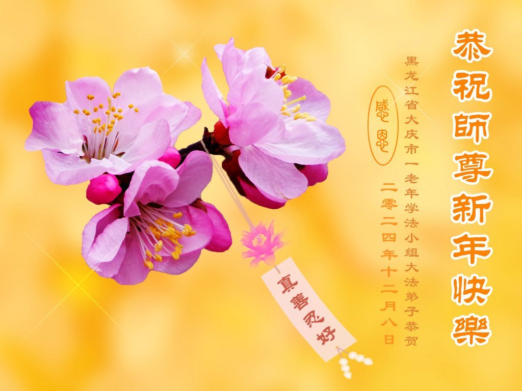 【明慧网二零二四年十二月三十一日】 黑龙江省大庆市一老年学法小组大法弟子恭贺伟大的师尊新年快乐!