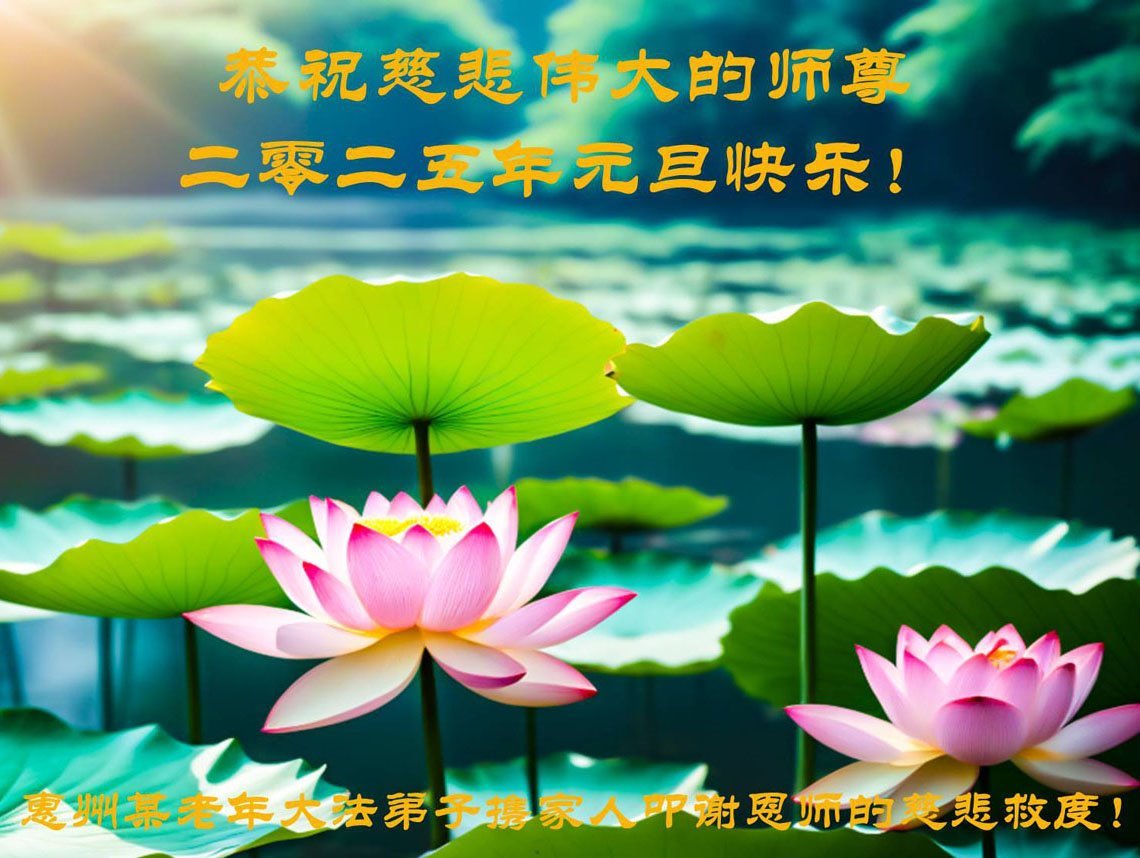 恭祝师尊新年快乐! 深圳市一大法弟子敬上 广东省惠州一老年大法弟子携家人恭祝师尊元旦快乐!叩谢恩师的慈悲救度!