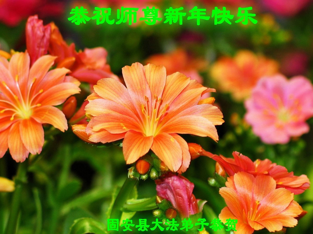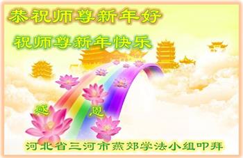 恭祝师尊新年快乐! 河北省廊坊市固安县大法弟子敬上 河北廊坊市永清县夫妻俩大法弟子恭祝师父新年好!