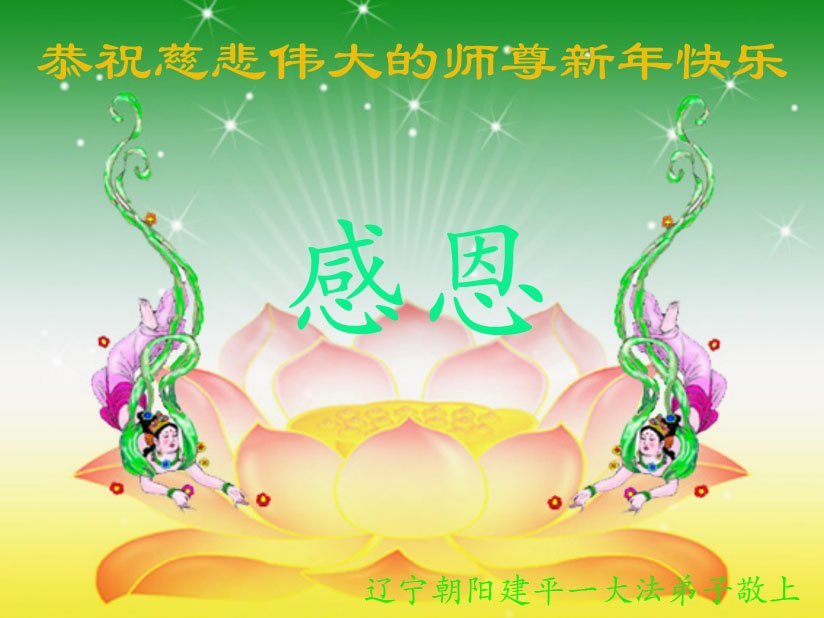 感恩师尊慈悲苦度!弟子紧跟师尊正法進程,听师父话,抓紧救人,多学法,学好法,净心学法,更好的兑现史前誓约,完成好大法弟子的使命,让师尊多一份欣慰,少一份操劳。 辽宁省朝阳市一个学法小组大法弟子恭祝师尊新年快乐!感谢师尊救度之恩!
