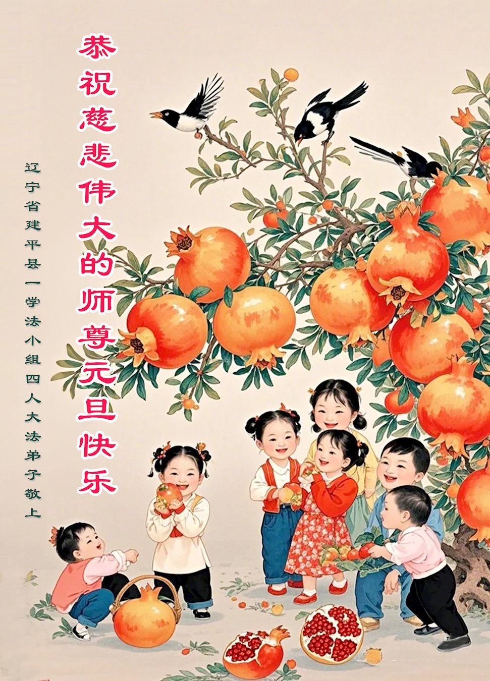 新年到来之际,谨代表全家人向师父问好!恭祝师父新年好!师父元旦快乐! 大法洪传,伟大慈悲的师父用真善忍法理引导亿万人走上回归之路,成为最幸福的大法弟子。您用高德大法引导世人道德回升,被大法救度。千言万语难以表达对师尊的感恩,弟子只有做好三件事,才能报师恩! 辽宁朝阳建平一大法弟子敬上 二零二四年十二月二十八日 辽宁省朝阳市大法弟子恭祝师父新年快乐!