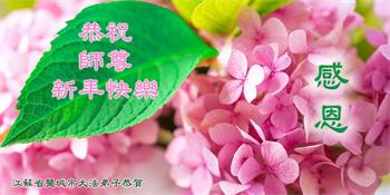 感恩师尊慈悲救度! 江苏省盐城市大法弟子敬上 江苏省三位大法弟子恭祝师父元旦快乐!
