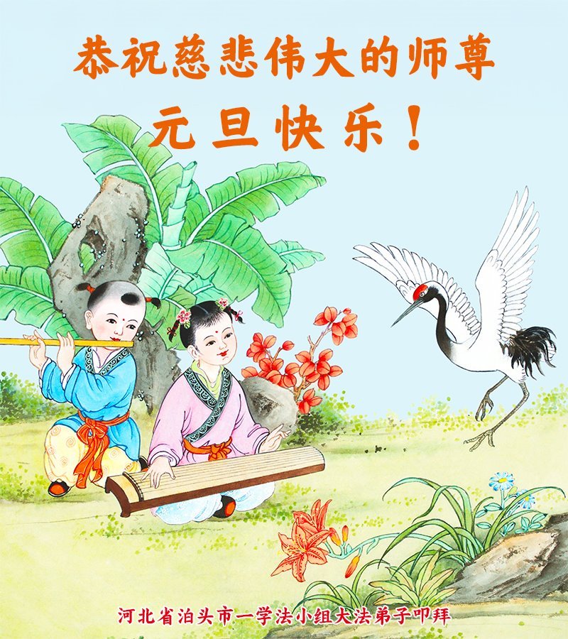 承蒙师恩,弟子得以脱胎换骨,身心净化,道德升华。感恩师尊慈悲救度,谢谢师父! 河北邯郸复兴区北三个学法小组大法弟子恭祝慈悲伟大师尊新年好!