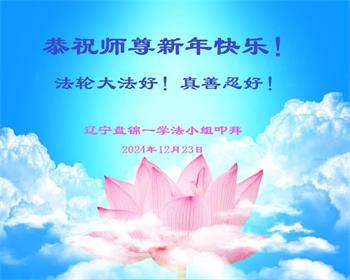 恭祝师尊新年好!师尊新年快乐! 我们一定要多学法,学好法,共同精進,共同提高,多救人,跟师父回家。 辽宁盘锦一学法小组大法弟子敬上 二零二四年十二月二十八日 辽宁盘锦大法弟子恭祝师父新年快乐!