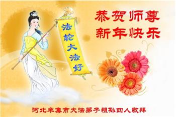 恭祝师尊新年快乐! 河北石家庄市桥西区某大法弟子全家敬上 河北省石家庄市桥西区某学法小组大法弟子恭祝师尊新年快乐!
