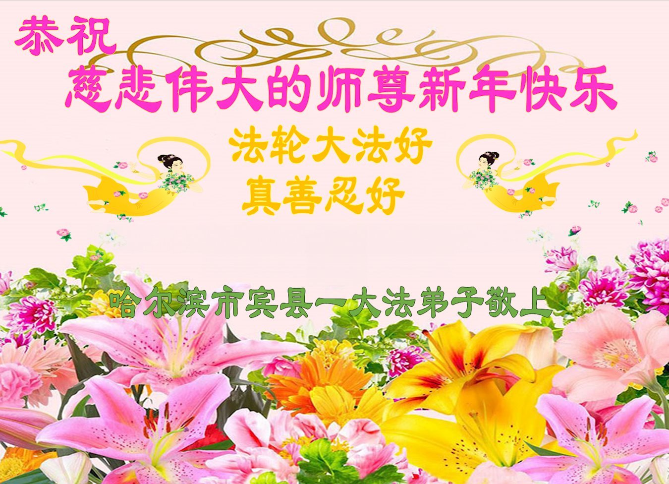 恭祝师尊新年快乐! 黑龙江省哈尔滨市退休大法弟子敬上 黑龙江省哈尔滨市宾县一大法弟子恭祝慈悲伟大的师尊新年快乐!