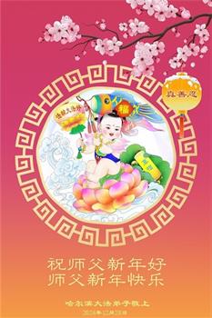 恭祝师尊新年快乐! 黑龙江省哈尔滨市周边大法弟子和家人敬上 黑龙江省哈尔滨一学法小组大法弟子恭祝师尊新年快乐!