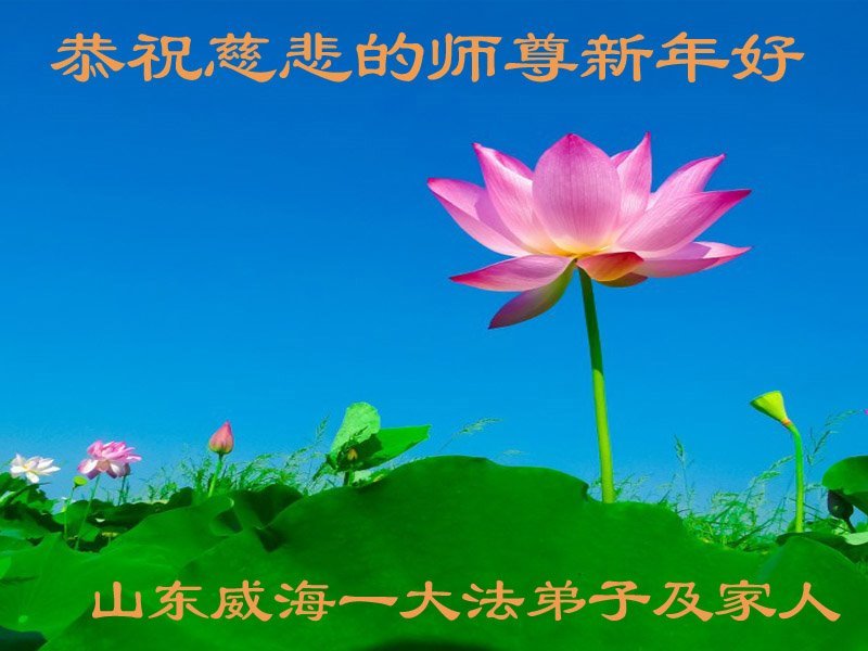 山东威海一大法弟子及家人恭祝慈悲伟大的师尊新年好!