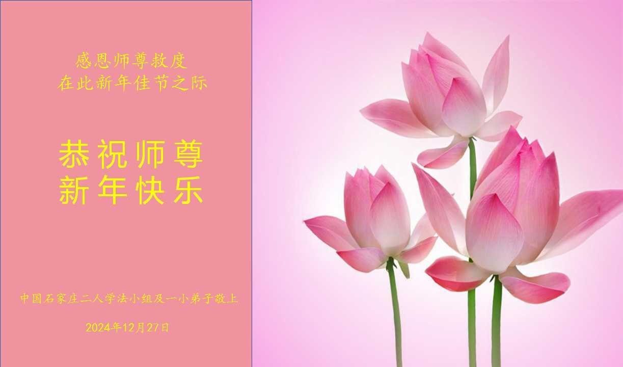 祝师父新年快乐!师父新年好! 唐山大法小弟子敬上 二零二四年十二月二十二日 辽宁女大法弟子及三个大法小弟子恭祝师尊新年快乐!