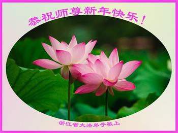 恭祝师尊新年快乐! 浙江省大法弟子敬上 浙江大法弟子携全家恭祝师父新年快乐!