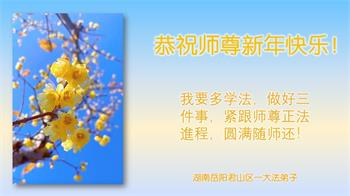 湖南省衡阳市珠晖区大法弟子一家三口敬上 二零二四年十二月二十七日 湖南省邵阳市一大法弟子恭祝师父新年快乐!