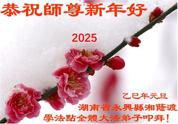 我们一定努力做好三件事,跟师尊回家! 湖南湘潭一学法小组大法弟子敬上 二零二四年十二月二十七日 湖南省郴州市永兴县湘荫渡学法小组全体大法弟子恭祝师尊新年好!
