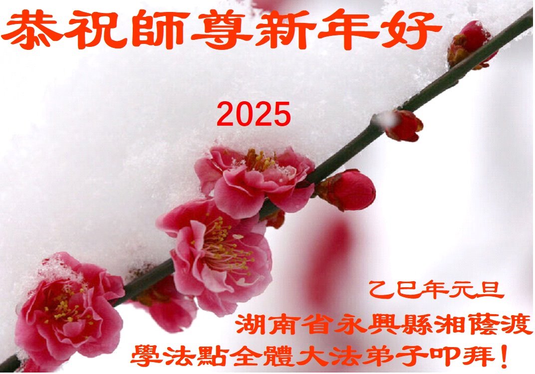 湖南省岳阳市一大法弟子敬上 二零二四年十二月二十七日 湖南省株洲市一学法点大法弟子恭祝慈悲伟大的师尊新年快乐!