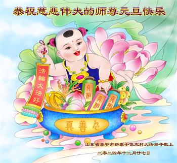 【明慧网二零二四年十二月三十一日】 山东省烟台市莱阳市一乡镇的全体大法弟子恭祝师尊新年好!