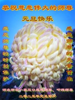 【明慧网二零二四年十二月三十一日】 湖北省武汉市三位大法弟子恭祝慈悲伟大的师尊新年快乐!