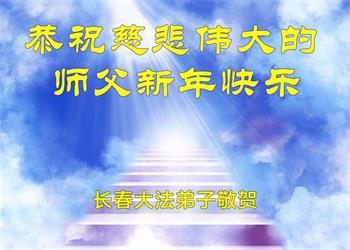 恭祝慈悲伟大的师父新年快乐! 师父传法世间新 大法辉煌 正法全盛 普天同庆 世间更美 吉林省长春市大法弟子敬上 吉林省长春市一学法小组大法弟子恭祝师尊新年快乐!