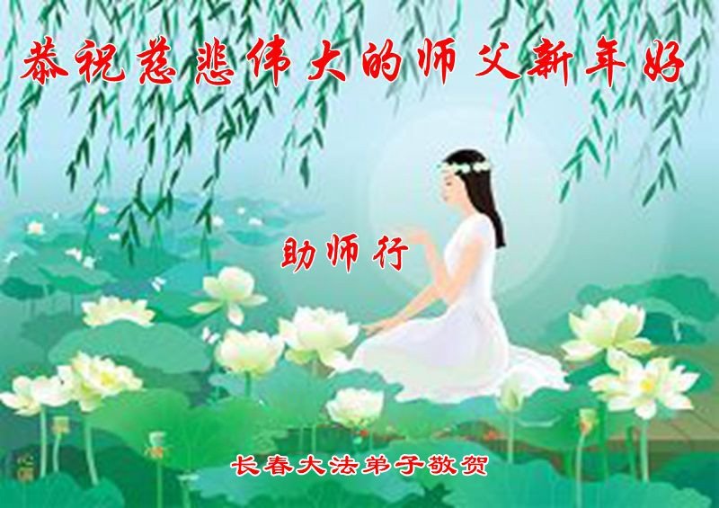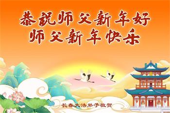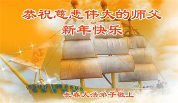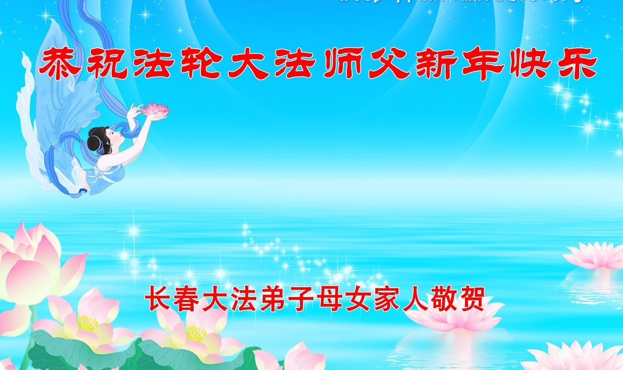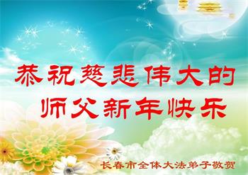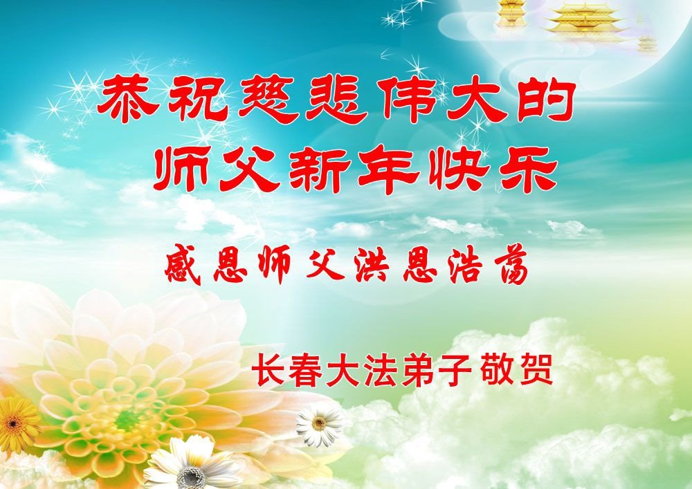 恭祝慈悲伟大的师父新年快乐! 师父正法下世来 转动法轮乾坤正 洪传佛法度众生 大法除恶救世人 吉林省长春大法弟子敬上 吉林省长春大法弟子恭祝慈悲伟大的师父新年好!