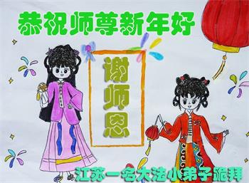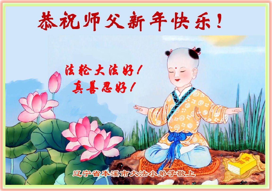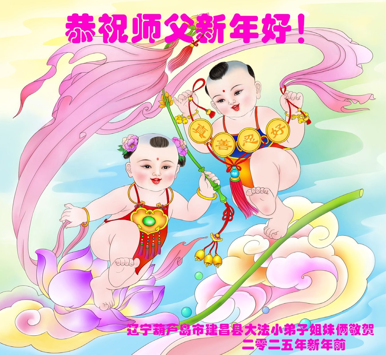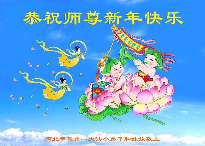 | 【明慧网二零二四年十二月三十一日】(明慧网记者综合报道)在二零二五年元旦佳节来临之际,中国大陆大法小弟子纷纷发来贺卡,表达感谢师父、想念师父的心意。 重庆市一大法小弟子想跟师父说句心里话:“我爱师尊。我天天念九字真言‘真善忍好,法轮大法好’。我心中一直想念师父。” 哈尔滨大法小弟子姐妹俩说:“感恩师父给我们姐妹俩健康的身体,我们从小到大没吃过一粒药,也没打过一次针。在师父的看护下,我和姐姐在大法中不断成长。” 当家人问大法小弟子长大后的心愿是什么?辽宁葫芦岛地区小弟子姐妹俩异口同声的说:“上神韵!” 辽宁省本溪市大法小弟子恭祝师父新年快乐!