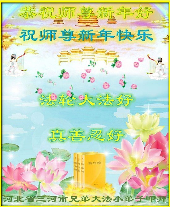 恭祝师父新年快乐!师父您好!小弟子想念师父,想见恩师,期盼与师父相见的那一刻。 法轮大法好!真善忍好! 河北省三河市兄弟大法小弟子恭祝师父新年快乐!