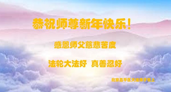 师尊您辛苦了!弟子想念您,感恩师尊慈悲苦度!在新的一年里,弟子将遵师嘱,多学法,争取多救人,跟师父回家。 北京市一大法弟子恭祝慈悲伟大的师尊中国新年快乐!
