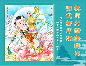 恭祝师父新年快乐! 哈尔滨一学法小组大法弟子敬上 二零二四年二月二日 黑龙江哈尔滨市一学法小组大法弟子恭祝师父新年快乐!