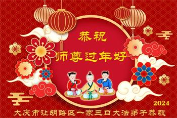 2024年2月4日 黑龙江大庆一大法弟子全家恭祝师父过年好!