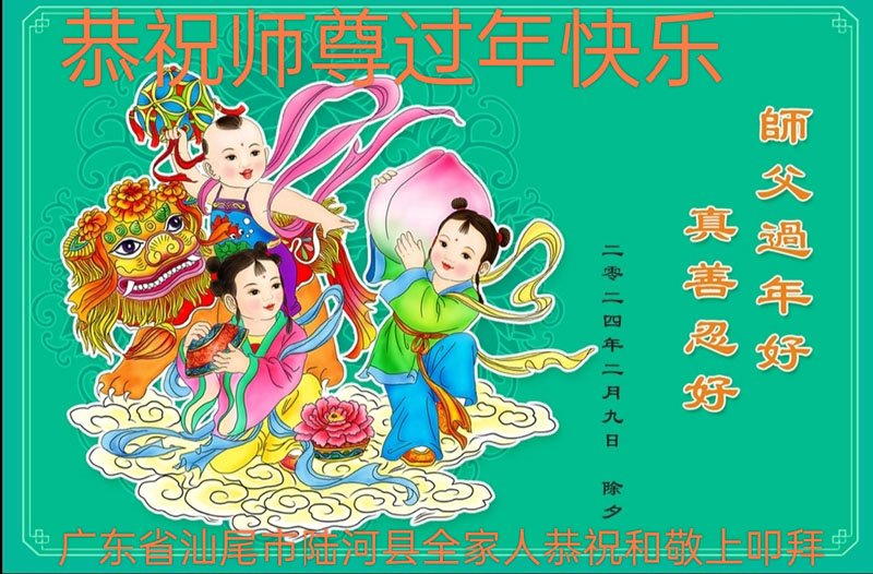 师尊过年好! 广东省揭阳市一家子大法弟子六人敬上 深圳西丽镇大法弟子一家人恭祝师尊过年好!