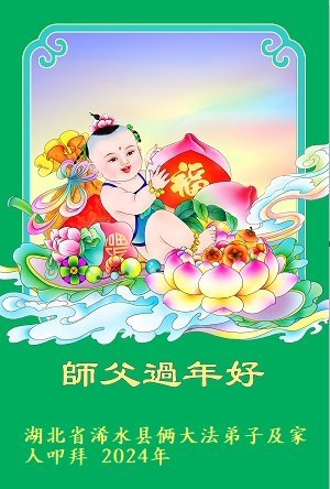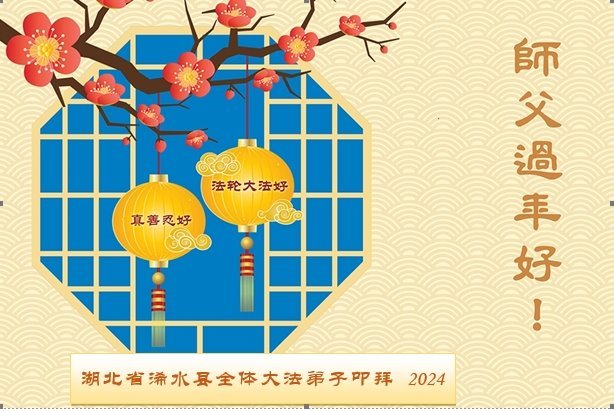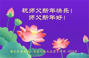 【明慧网二零二四年二月十日】 湖北省黄冈市麻城市一学法小组大法弟子恭祝师父过年好!