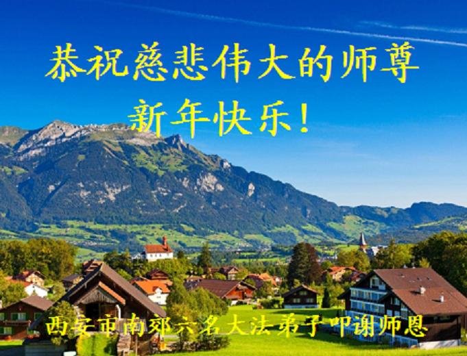 陕西省西安市南郊大法弟子恭祝慈悲伟大的师尊新年快乐!